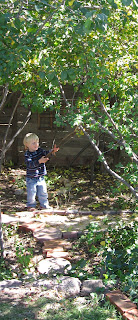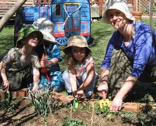 Next, look at your own back yard, and figure out how you can make it a little more magical. Yards become magical by having lots of texture, different spaces with different terrain, and lots of hidey-places. Find a place where two fences meet, and curve a plastic trellis from Home Depot to make a little trellis house! This one I did at Boulder Waldorf Kindergarten, and trained a grape vine over it. The grapes would grow down through the holes. Fantastic!