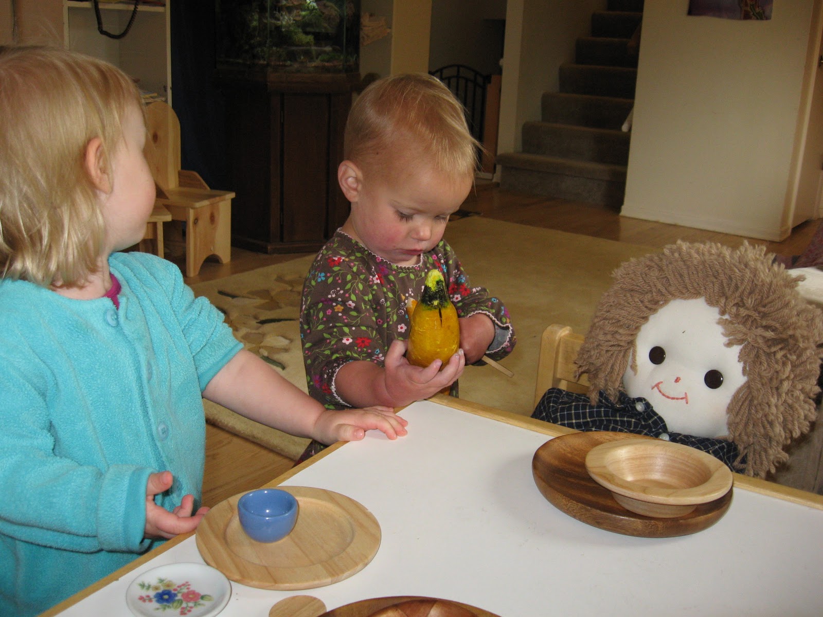Me: Yes. (pause) You were playing with it, and now it’s Sylvia’s turn. (pause again) Now you’re playing with the dolly.